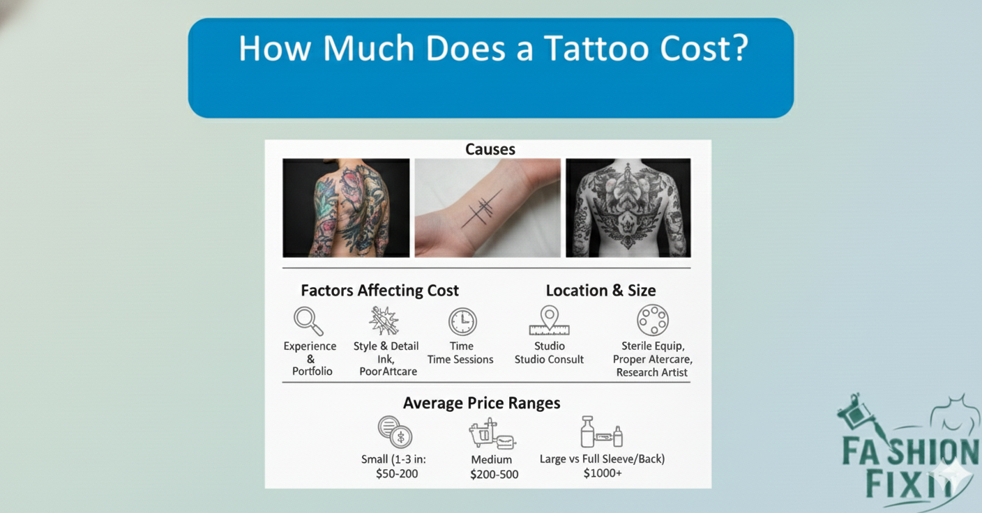 A tattoo costs between $50 for a small design to $5,000+ for large custom tattoo designs, with prices depending on…